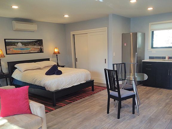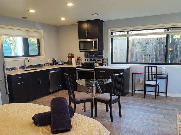 - fully furnished - month to month rentals - one month minimum - one month's notice to move out - $500 fee in lieu of a security deposit, to cover any damages or extra cleaning that may occur - all utilities a flat $100 monthly fee Enjoy peace of mind when you stay in this light & bright Emerald-level NGBS certified studio. Running on solar energy & built with low-VOC materials, Full sized kitchen, TV, and washer/dryer in unit. - fully furnished - month to month rentals - one month minimum - one month's notice to move out - $500 fee in lieu of a security deposit, to cover any damages or extra cleaning that may occur - all utilities a flat $100 monthly fee