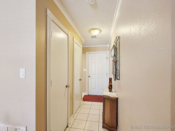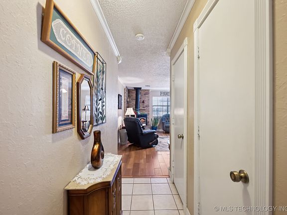 wood-look tile flooring, and crown molding adds character and charm throughout. Outdoor