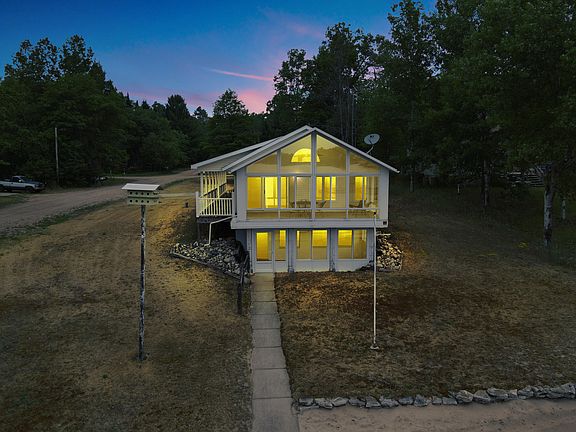 Located on a quiet cove on the north end of All Sports Little Bear Lake, is this beautiful home. Quiet mornings in the fully enclosed upper porch will lead to fantastic afternoons on and in the water. Just a few steps from the edge of 50 feet of sandy beach frontage, it has an open floor plan, cathedral ceilings, two bedrooms on the main floor, 2 non-conforming bedrooms (10.5x10 & 10.5x12.25) in the finished and simply stunning walkout lower level, with another enclosed porch! This home has three full baths, one in the Master Suite, with additional baths on the main floor and a full bath in the basement. A phenomenal stairway down leads to a living room downstairs equipped for surround sound, and additional large open floor plan with room for everyone in the game room.
