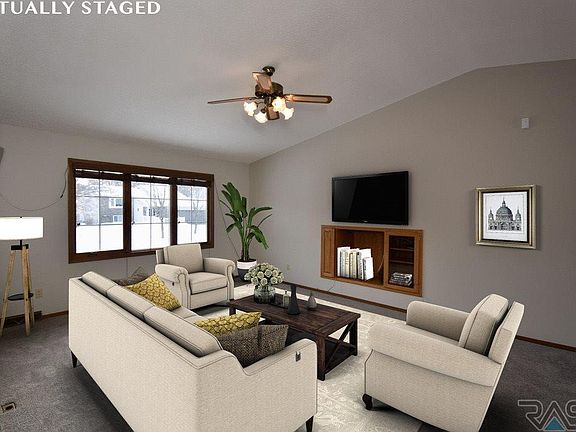 Meticulously maintained and numerous upgrades in this 3 bedroom, 3 bathroom, 4 stall garage home. As you enter, you'll notice the ease of flow and brand new carpet throughout. Step down to the family room complete with a gas fireplace and wet bar perfect for entertaining. You'll sure to be impressed by the garage with a stone fireplace, half bath, bar area, floor drain, hot/cold water, and plenty of storage space. Additional upgrades include siding, interior and exterior paint, roof, windows, deck, paver patio, 6ft vinyl privacy fence, Trane furnace and A/C. Ideal location close to schools, parks, restaurants, shopping, and I-29.