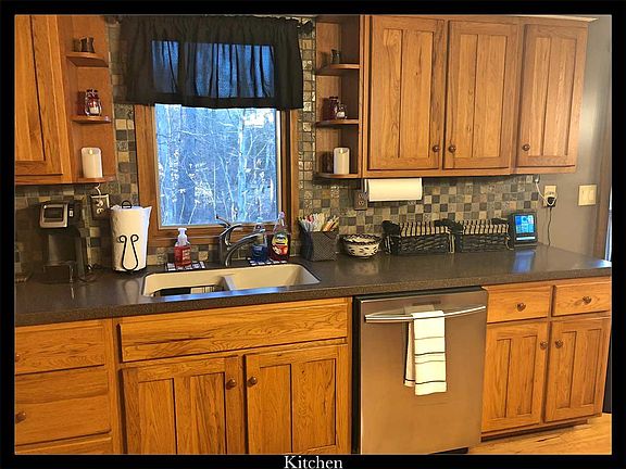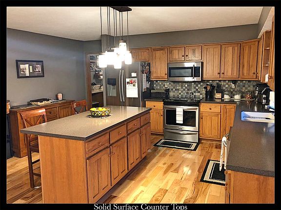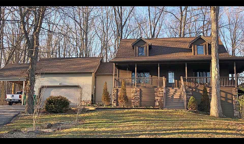 Don't miss this beautiful 3,200 sqft home on 8 acres of paradise. Situated on a wooded 8 acre track of ground with numerous trails and a pond that has recently been stocked with crappie. Highlights of this 3bd, 2.5bath 2 car attached garage with newly added 1 car carport over a walkout basement, including a beautiful kitchen remodel featuring stainless steel appliances, solid surface counters and tile backsplash, a huge kitchen island, hickory hardwood floors, and custom made cabinets from Plum Creek. More features include new roof in 2017 with gutter gaurds, a 2 story great room, a remodeled master bathroom with walk in tile shower and garden tub, new carpet in mud room and basement newer paint throughout home. Enjoy the wrap around deck and the peace and quiet that comes with this home. The finished lower level has two double doors for lots of natural light, the space does not feel like a basement. Hope to see you soon!!