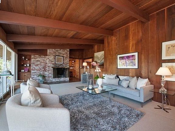 Custom Mid Century Contemporary Cottage. Interesting and dramatic architecture. Soaring Redwood beamed ceilings, cork floors, walls of glass with San Francisco and Bay views. 1 Bedroom / 2 Bath on main and 2 Bedroom /1 Bath down. Great indoor-outdoor living with pretty courtyard, view filled deck and level back yard. Very special.