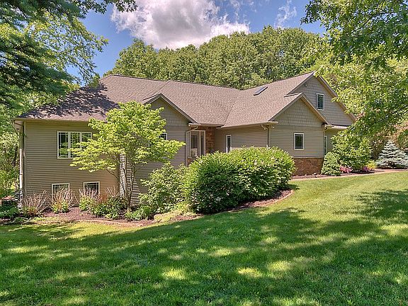Enjoy an amazing home that feels like vacation every day! 5 bedroom 3 full & 1 half bath spread out over 5,348 roomy square feet on almost 3 acres of private wooded paradise. Relax on the 2 tier deck & patio walking out to in-ground heated pool. Walk-out level boasts guest suite including full kitchenette, plumbed for washer/dryer, living room & rec room all with sealed pine built in shelving & trim. 2 large bedrooms w/ Jack & Jill bath. Heated sealed concrete floors add to comfort & coziness. Ma in level features Gourmet kitchen w/ 2 tier island, bedrock granite counter tops, stainless steel appliances, dining area opening to huge living room w/ tray ceilings, stone fireplace, formal dining with mullion doors to top deck. Master bedroom w/tray ceilings, walk-in closets, relax in soak tub in private bath. Our own private getaway 7 miles from 28th Street.