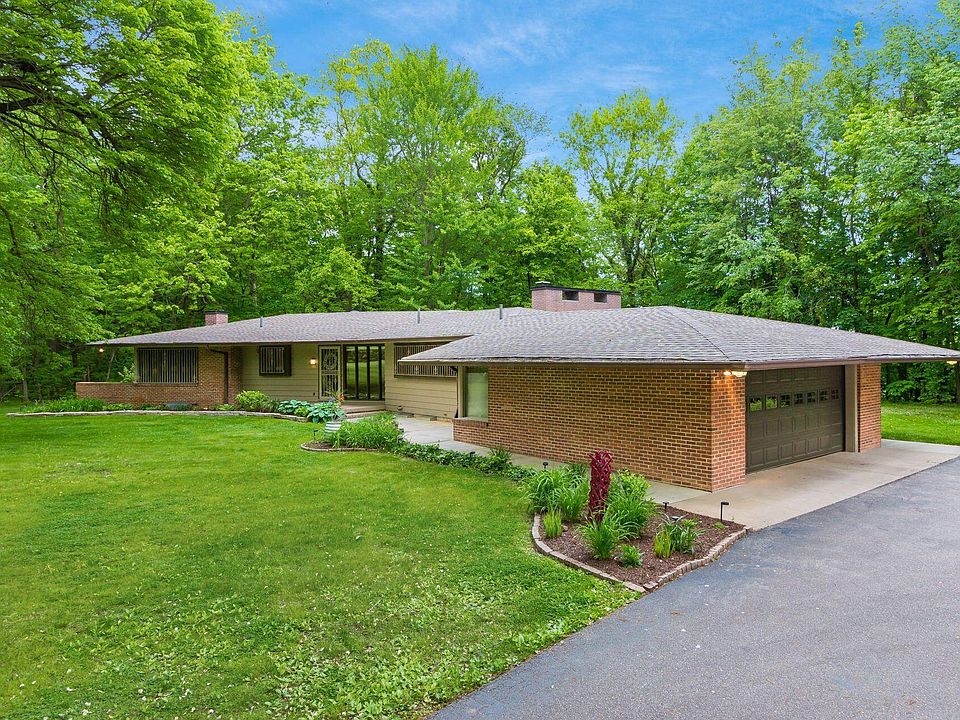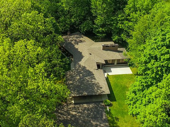 This stunning Frank Lloyd Wright inspired home will make your dreams come true. As soon as you walk through the grand foyer, imagine relaxing w/a glass of wine in the magnificent great room admiring the gorgeous pecky cypress walls, vaulted ceilings, floor to ceiling brick fireplace, and beautiful slate flooring w/radiant heat. Or, sitting on the porch while you enjoy listening to all the birds and watching the deer meander across the expansive front yard in your own private oasis. All the windows allow you to enjoy the outdoors while they bring in lots of natural light. The spacious dining room w/oak pegged flooring and the airy three season room are great for entertaining your guests. Your primary suite includes knotty pine walls and a private bath. Look no further and call it HOME.