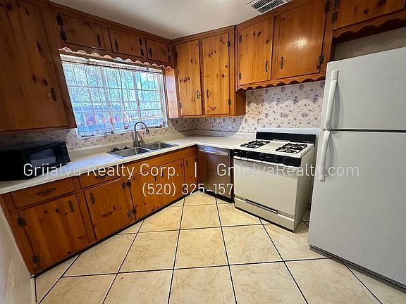 Available now is a 4 bedroom, 2 bath house on a corner lot. New AC cooling plus ceiling fans. Living room features a stone faced fireplace. Tile flooring in living areas and carpet in the bedrooms. The kitchen has charming knotty pine cabinets and is equipped with an electric stove, refrigerator, dishwasher. Washer/dryer hookups. Both back and front yards are fenced. Security iron on windows. Quick walk to neighborhood park and close to shopping, dining, and bus lines. Tenant pays all utilities. Pets allowed with a $500 deposit plus $25/month pet rent per pet. Directions to property: from 22nd St and Wilmot, head south on Wilmot. Turn right on 25th st. Continue west on 25th. House is on the right at the corner of 25th and Sahara. (Availability and price subject to change without notice.)