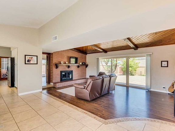 Step inside this incredible single story home that sits nestled in the amazing city of Tucson! Upon entering this home, you are greeted with gorgeous tile flooring, exposed wooden beam ceilings, cozy brick fireplace and an open floor concept! The kitchen features dual sinks, granite countertops, SS appliances, stark white cabinetry, pantry (cabinets) and tons of counter space. The spacious bedrooms offer plenty of room for sleep, study and storage. The hall bathroom showcases a stand alone bathtub and soothing countertops. The covered back patio overlooks the private/fenced diving pool, a perfect setting or relaxing or entertaining! Don't hesitate on this one! Make your move and book your showing today!