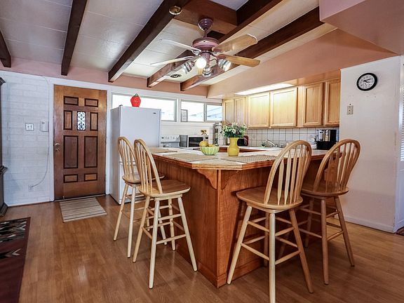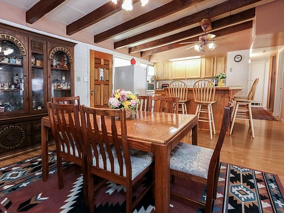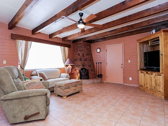 REDUCED! For the car enthusiast or mechanic! Well maintained home on large corner lot with TWO 2-car garages and a carport, room for all your toys - RV, boats, etc. House has NEW dual pane windows, open beamed ceilings, wood laminate and tile floors, UPDATED electrical, recently coated roof, storage galore, UPDATED master bath with new vanity, tub, tile, lighting. Beehive F'pl (wood burning) in living room. More: built-in BBQ, fabulous gazebo, mountain views, and turf (lo care yards), GAME room with heated SPA, bar, space for entertaining, TV and more. Evap cooler ''as is''. There are 1.5 baths. Central AC and gas furnace installed 2011.