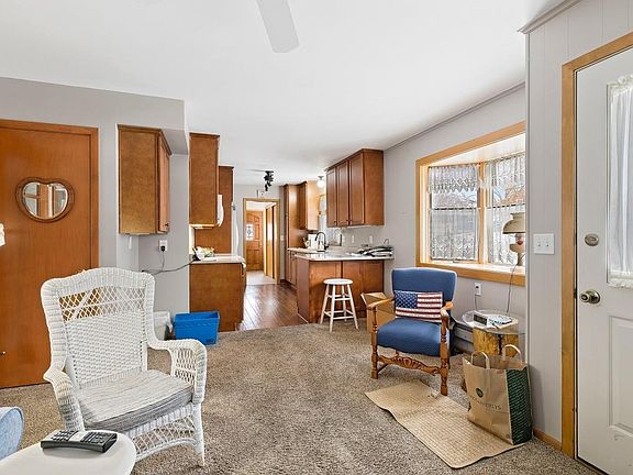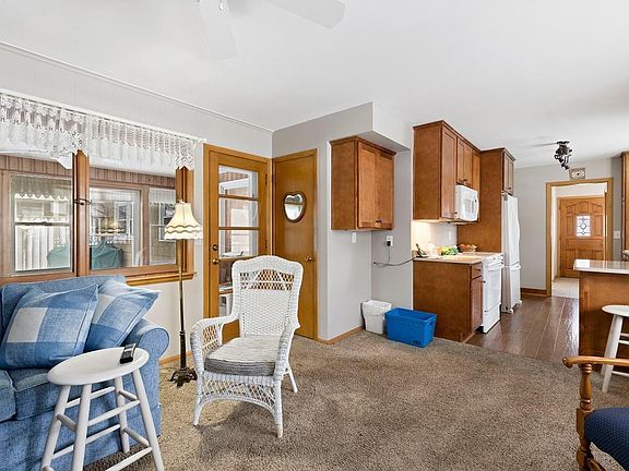 Great walkout rambler in a wonderful area. This updated home has so many wonderful features; 2 woodburning fireplaces, formal dining room+ breakfast bar, hardwood floors in living room, dining room + 2 main level bedrooms. Updated bath, 3 season porch onto spacious deck overlooking lake, walkout family room opens into 3rd (LL) garage. Kitchen remodeled approximately 5 years ago. Quartz countertops, composite wood floors, cherry cabinets, newer microwave, track lighting, sliding drawers in pantry & so much more. Walkout level features legal bedroom, den/office area, family room with fireplace, 3/4 bath and spacious, nicely finished exercise/laundry room with storage. Double garage is insulated and has garage door opener. 3rd garage (LL) is currently used as a workshop and storage area. Enjoy the home, enjoy the lake and love the neighborhood!
