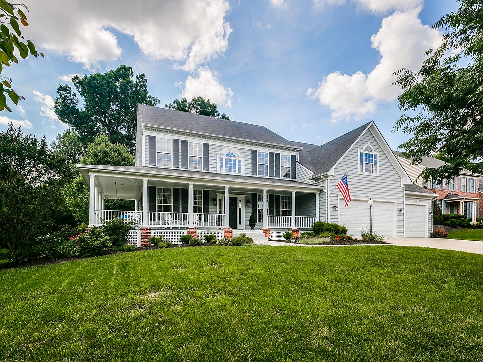 River Hill Schools! Backs to woods. Rear screened porch with oversized wood-burning fireplace. Wrap-around front porch with swing, 3-bay garage, hardwoods throughout first floor, GIANT walk-in pantry. Custom French doors in living room. 12x12 mudroom on first-floor could be 5th bedroom. Walk to shopping, gym & schools. New Kitchen and baths. Solar Panels. Gas heat. Open floorplan. Rear stairs.