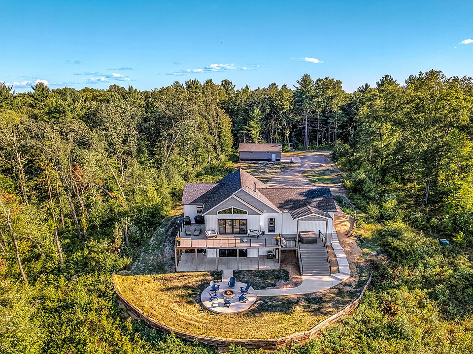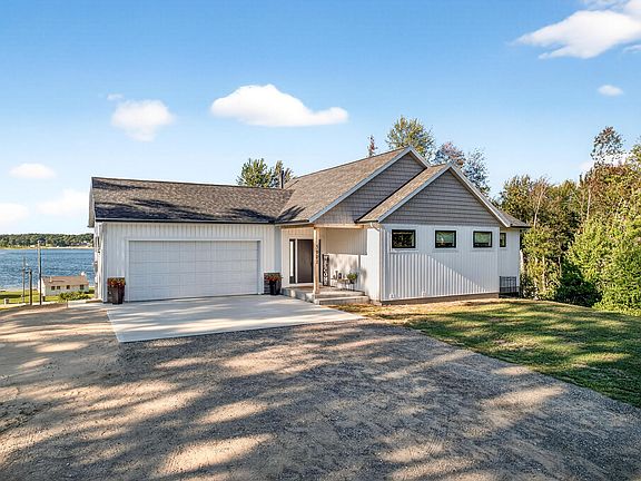 Panoramic lake views that rival any waterfront property without the hassle of shoreline upkeep or the high waterfront taxes. This stunning 2020 custom-built home offers nearly 3,500 sq. ft. of finished living space on a serene 3.3-acre parcel. Enjoy breathtaking panoramic views of the water—capturing the beauty of lakefront living without the added taxes. A custom staircase seamlessly connects both levels, blending design with function.