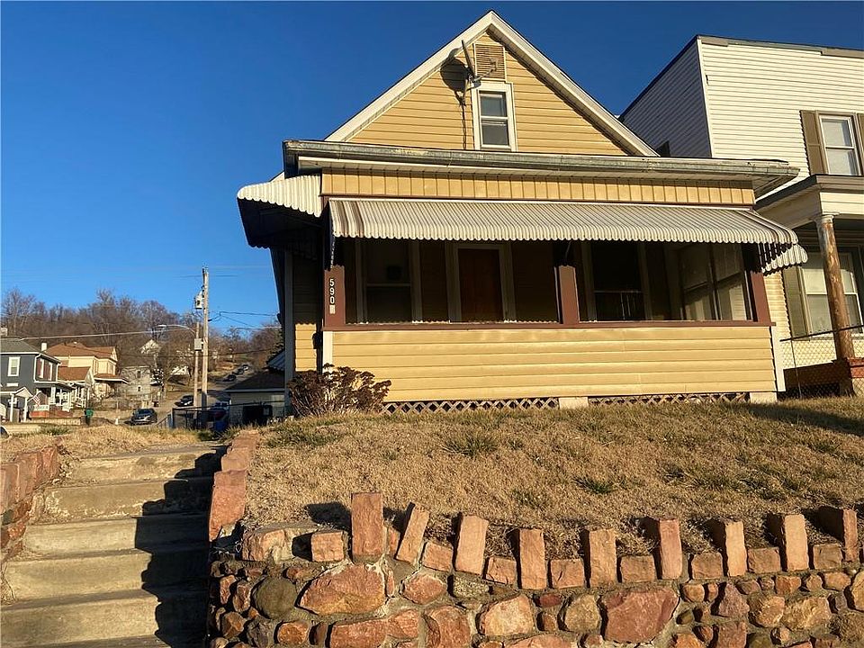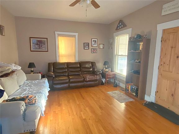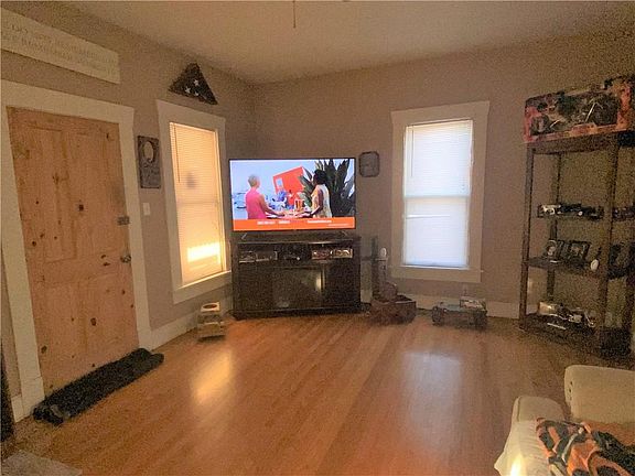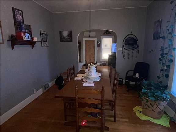 This one (possible two) bedroom home features large living room and formal dining room with hardwood floors plus convenient main floor laundry. Located on a corner lot with chainlink fenced backyard and detached garage. Long term (15 yr.) tenant would like to stay. Currently paying $500 per month. Being sold AS IS.