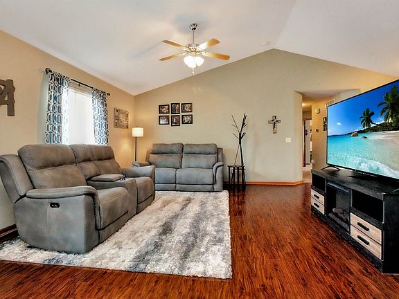 Fantastic Ranch in top condition on a quiet street with an open field behind the home! The home has a super open floor plan with a fully finished viewout basement! The large entryway has a six-panel entry door with two sidelights and a coat closet! The open living room has a high vaulted ceiling, double windows, LVT flooring and a ceiling fan! Open to the living room is a nice dining area with a vault and patio doors to the deck! The large open kitchen has an abundance of cabinets, eating bar, vaulted ceiling and stainless-steel appliances replaced in 2017. The totally separate laundry room has shelving and hanging rod plus a pantry area! The spacious master has a large walk-in closet and a fabulous bath with a soaker tub with an opaque window above, a separate shower and a large double vanity with a marble top! Also on the main floor are two nice sized bedrooms with double windows and nice closets plus a hall bath with a 3ft marble top vanity and a tub/shower! The basement family room is a very nice sized room that is a great place to hang out with two viewout windows and can lighting plus there is a super exercise/game room off the family room! The 4th bedroom is huge with a viewout window and a walk-in closet with a sweater rack! The sharp basement bath has a tub/shower, vinyl floor and a marble top vanity! Outback there is a new deck, firepit and fenced yard with a sprinkler system! Updates include new carpet on the main floor, very high efficiency HVAC that is one year old, newer exterior paint and new deck!