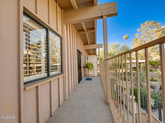 This comfortable 1014 square foot second floor condo has 2 bedrooms, 2 full bathrooms and a nice open concept kitchen/living room has high beamed ceilings, which give a feelng of spaciousness. There are plantation shutters on all of the windows, and nice views to the East from the living room, kitchen and front balcony of the pool area and the beautiful Santa Catalina mountains. The HOA fee covers a lot, including water, gas, the community pool, common area maintenance, building exterior, trash, termite & pest control. Rentals are allowed in this community. It's a great place to live!