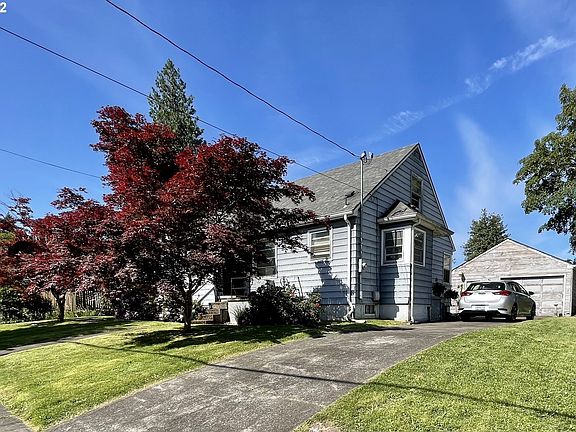 Charming Cape Cod home featuring coved ceilings, hardwood floors, and a wood-burning fireplace. It offers 2 main level bedrooms, 1 BR upstairs, and a spacious unfinished basement with high ceilings. The basement has a separate entrance and includes a sound-insulated room currently used as a music jam space. Situated on an extra-large lot, the property includes an oversized detached garage, a long driveway, and potential for an accessory dwelling unit (ADU). Updates include new furnace, newer electrical panel, and a newer sewer line. Roof is 2009. Located in a vibrant area near Dekum Triangle, Alberta Arts, and Killingsworth. Apt. Only [Home Energy Score = 5. HES Report at https://rpt.greenbuildingregistry.com/hes/OR10201652]