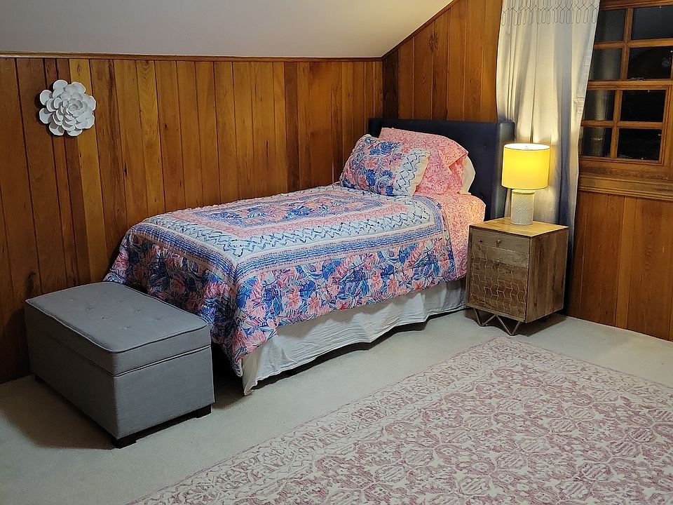 Private room and private bathroom on 2nd floor of home. This room is fully furnished. It has a twin sized bed, night stand, desk and storage bench with a closet. The bedroom is carpeted. The bathroom is located right beside the bedroom. It is a spacious bathroom with 2 sinks, a standing shower, a toilet and plenty of storage. It has tile flooring and light gray walls, recently painted. The shared spaces you will find 2 kitchens, a laundry room, full dining room, and a basement with game room- pool table, arcade games and fooseball table. During summer the pool is open and beautiful landscaping. We have a small dog. This home is located on the East side of Evansville, it is centrally located to many places. It is surrounded by nature and is quiet. *6 months lease *must respect quiet hours 9pm-7am *no large parties allowed (more than 6 people) *no excessive use of water or energy: ex: showers less than 10 minutes *keep room and bathroom clean, clean up after self in kitchen and other common areas