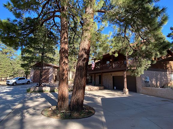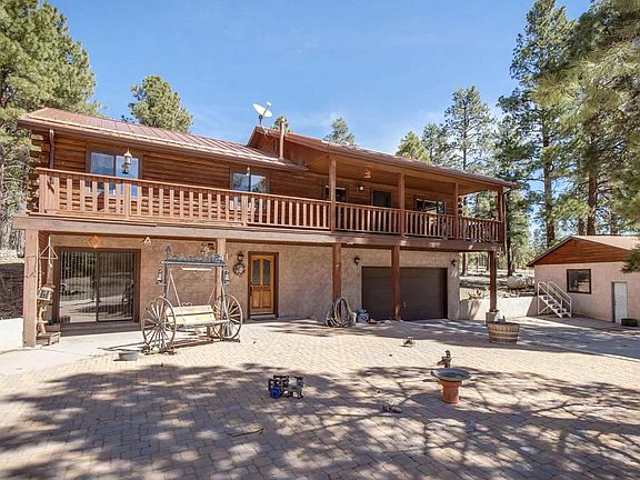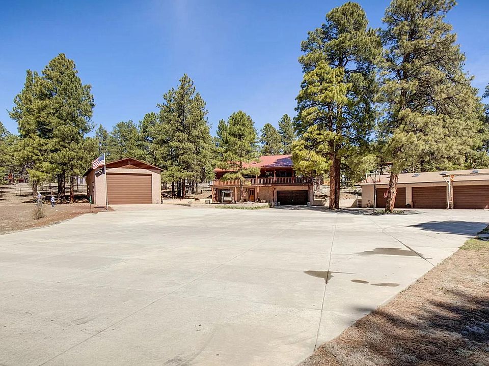 This log home is truly a unique place and only minutes from town. This property sits on nearly 5 acres and surrounded by mature ponderosa pine trees. If you've got toys, bring them! There are two detached garages, each being 28' x 48' in size, which gives you endless possibilities. Also included is one of the largest concrete driveways in Northern Arizona. A home has access to water and tank propane. The interior is complete with floor to ceiling wood finishes, vaulted ceilings, and new vinyl flooring in all the lower level. Owner will consider uage for short-term rental such as Airbnb or at home business. Come see this special property for yourself! Tenant responsible for all utilities and maintenance of the grounds, including keeping the pine needles and pinecones away from the house and the grass at a reasonable height. We do require application and background/credit check.