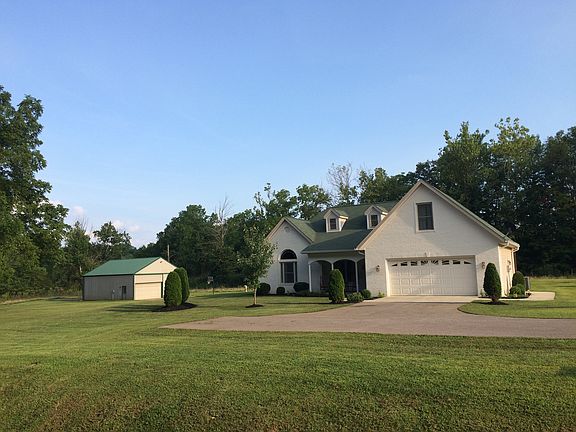 This beautiful painted brick home sits on 1.81 acres and is located just 8 miles to downtown Bloomington. Inside the home you'll find the great room that features a dramatic vaulted ceiling and a cozy brick fireplace. The kitchen offers gorgeous cherry cabinets, stainless steel appliances and solid surface counter tops! The master bedroom is extra large with his & hers walk-in closets, the huge master bathroom features a custom ceramic tiled jetted tub and shower surround. Two additional bedrooms with a Jack and Jill full bathroom are also on the main level. The upper level 13 X 21 bedroom would also make a very nice bonus/game room; additionally the third full bath is located on this level which would also be ideal for overnight guest. The views are stunning from the large back patio that features a custom built pergola, if you're looking for serenity you've found it with this home. There's also a large 32 X 42 heated and finished on the inside pole barn that offers limitless uses