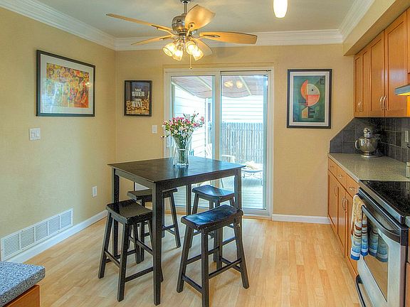 Built in 1986, this adorable 2-story home is tastefully remodeled featuring updated kitchen with maple cabinetry, stainless appliances, Corian counters with integrated sink, ceramic tile backsplash, walk-in pantry, upgraded light fixtures and faucets, Pergo flooring, crown molding, wood burning fireplace with brick surround, wainscoting, vinyl windows and sliding door, window blinds, finished basement with office/hobby room, ceiling fans, front and rear decks, finished garage with built-in cabinetry, lawn and flower beds in backyard, storage shed. Great location...walk to nearby Ute Valley or Pinon Valley parks!