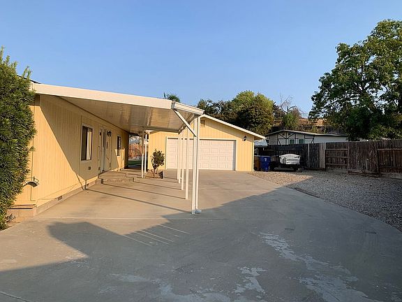 This property is located off Fairfax Rd and Panorama Drive in Royal Coach Estates gated community with a recreation room & swimming pool. 2 bedroom 1-3/4 bath home also the 1-3/4 bath is accessible from the laundry room, over sized laundry room w/washer & dryer included, Open kitchen layout to formal living room that has a cool little wet bar, breakfast bar & refrigerator included, Wood flooring, 2'' blinds, formal dinning room, great layout for back yard BBQ, 2 covered patio areas with an oversized detached 2 car garage. Cud-de-sac over sized lot 10,890, Large RV parking w/220 plug and RV dump line.
