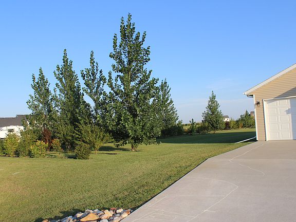 Well kept, 4 bedroom, 3 bathroom home in SE Bismarck built in 2010. This split entry home sits on 1.5 acres. A great kitchen with extra deep sink and upgraded faucet. The kitchen/dining and living room have a lot of natural light and you will love the view of Bismarck out your living room window! Upstairs is a master bedroom with master bath and walk-in closet, full bathroom and an additional bedroom with a walk-in closet. The downstairs contains a family room with a gorgeous fireplace, two bedrooms, full bathroom, utility/laundry room and storage. The dining room leads toward the 12’x16’ deck and 12’x16’ concrete patio. You will love the 400+ trees/bushes that border the property and the landscape around the home. There is a brick fire pit and various fruit trees and bushes including apple, pear, plum, chokecherry, juneberry, and cherry. There is an above ground irrigation system for the trees and bushes and also for flowers in the rock bed. The large garden area includes a raised strawberry bed and raspberry bushes which will produce more raspberries than you can eat! The finished and heated triple garage with hot/cold water and floor drain, fully concrete driveway. There are NO SPECIALS! The swingset is negotiable. Serious buyer’s only please.