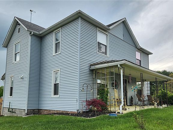 This well maintained 5 BR home blends timeless charm with modern comfort, set on over half an acre of scenic countryside, and only minutes from I-77 and Byesville. A welcoming entryway leads to spacious, sunlit rooms throughout. The main floor includes one bedroom, a full bath, and the newly updated kitchen is a chef’s dream, complete with pantry, soft-close drawers, and plenty of prep space. An elegant tray ceiling with recessed lighting and a chandelier enhances the formal dining room, while built-ins between the dining and living rooms add charm and storage.
