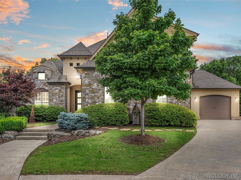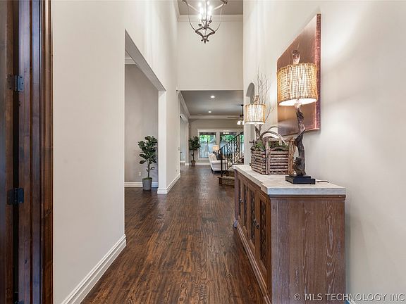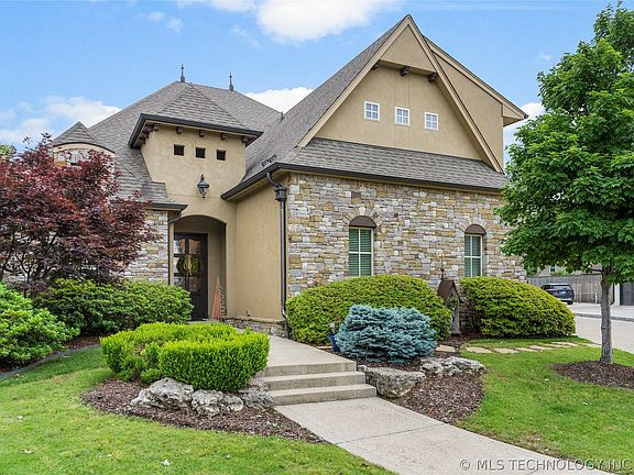 Stunning home in prestigious Tradition of South Tulsa. This remarkable home combines elegance, functionality and comfort, making it the perfect place to create lasting memories. A beautiful kitchen designed with entertaining in mind features rustic wood beams that add charm to the modern amenities. Equipped with top-of-the-line Viking appliances, including 5-burner gas cooktop, double convection ovens and microwave. Additional amenities include a built-in refrigerator and freezer, granite butler’s pantry with beverage fridge and walk-in pantry. The vaulted breakfast room is flooded with natural light while the formal dining provides an elegant dining experience. The open great room features a striking stone fireplace flanked by custom built-ins providing both style and storage. A private study provides a quiet space for work or reading. The main level hosts a luxurious master suite and a convenient guest suite, providing privacy and comfort for all. Indulge in the serene master bath, adorned with exquisite marble, whirlpool tub, and large walk-in shower. Two separate vanities provide ample space for morning routines, while a generous walk-in closet, designed for two, connects to the laundry room, adding practicality to everyday living. Upstairs, you will find three additional bedroom suites, each thoughtfully designed with private baths and walk-in closets. A dedicated home theater for movie enthusiasts and a separate game room with wet bar including mini fridge, sink and microwave, provide endless entertaining opportunities. Outside discover a covered outdoor living area, complete with stone fireplace and charming pergola. This space is ideal for year-round enjoyment, whether you're hosting a barbecue or relaxing on a cool evening. The extensive professional landscaping creates a secret garden ambiance, with a stone pathway leading from the outdoor living area to the driveway, adding a touch of enchantment to your daily routine.