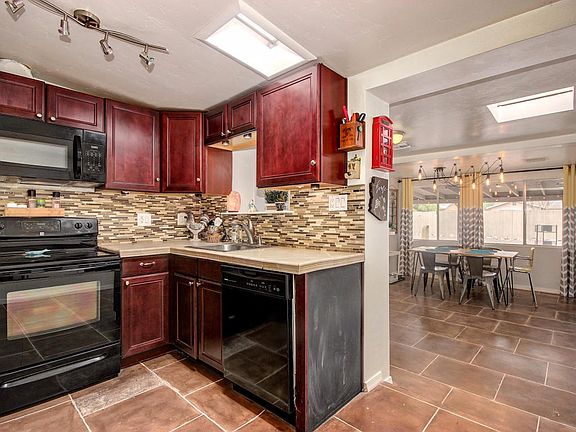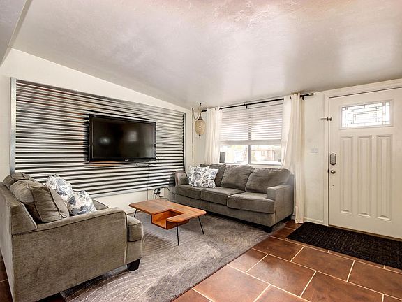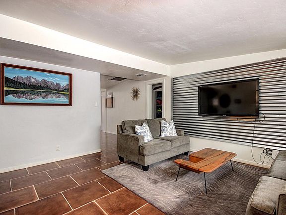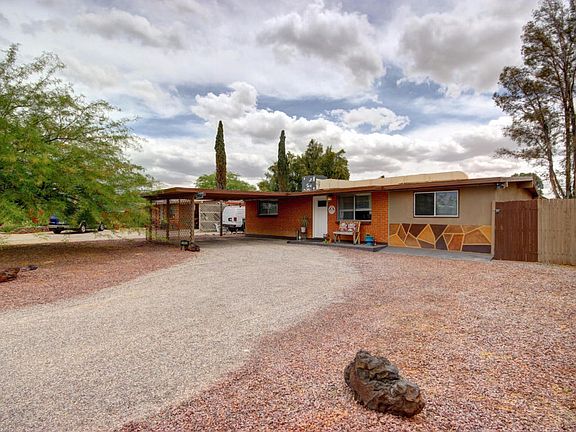 Absolutely charming central Tucson home! Tastefully updated with concrete stamped floors, soothing palette, window blinds, tiled kitchen counters, glass tiled backsplash, black appliances, and wood cabinetry with hardware in kitchen. Patio access from dining room with lots of natural light. Plush carpet in bedrooms, updated baths, plenty of closet storage, and ceiling fans throughout. Master retreat boasts beautiful hardwood bamboo floor, unique barn door entry, and private en suite. Huge backyard offers covered patio and plenty of room for a pool, garden, and ''toys''! Brand new AC & duct work in 2015 & water heater was replaced in 2015.
