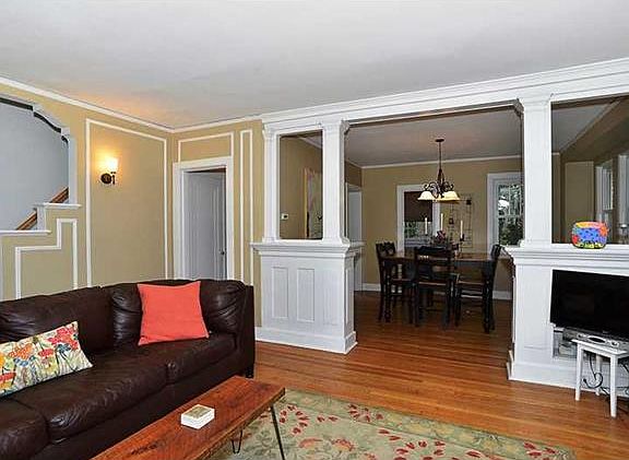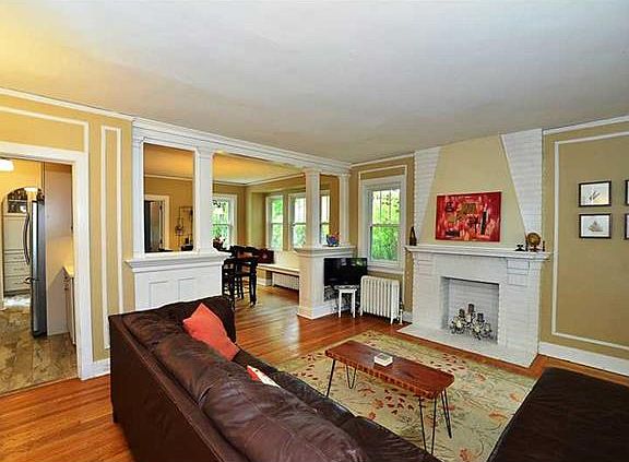 Charming Arts and Crafts style home sited on corner lot. Spacious living room with sunroom (den), refinished hardwood floors, dining room, new kitchen with stainless appliances; updated powder room and bath; many new windows Fenced level yard with patio and detached garage