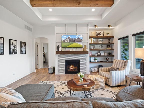 Don't miss out on this rare opportunity to own a jaw-dropping Signature Homes showcase home! The beautiful brick and stone exterior with rustic beams creates an amazing first impression that perfectly aligns with the deep attention to detail and design found inside. Rich hardwood flooring with complimentary exposed beams warmly welcome all who enter and naturally highlight the soaring ceilings throughout the spacious floor plan. Absolutely the heart of this home, the stunning kitchen features an 8-foot island, farmhouse sink, top-end GE cafe series appliances, brick backsplash, and custom soft-close cabinets that make the space feel as if it is fresh out of an HGTV show! A massive walk-in pantry is ready to meet all your storage needs and highlights how beautiful a space can be when design and functionality meet. Located on the main level, the formal living room has a gorgeous gas fireplace and floating shelves.