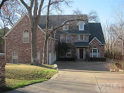 Knockout home near Lake Arlington! Extensive stained concrete flooring downstairs, wall of windows overlook oversized yard with towering trees. Lagoon style pool & spa! Granite tile countertops, island & gas cooktop. Master & study downstairs. 3 bedrooms plus gameroom & huge media room upstairs. Master suite boast gas log see-through fireplace into master bath with jetted tub. Over 4,300 sq ft with 3 car garage & quick possession is available.