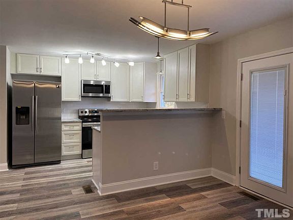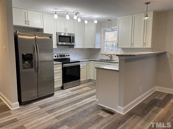 Totally updated 3 bedroom 3 full bath brick ranch on a .902 acre lot in Northern Durham County. No City Taxes! Features all new exterior and interior paint, new flooring, office, new cabinets, granite countertops, subway tile backsplash, new stainless steel appliances and breakfast bar. This home also offers a new HVAC, an oversized detached 2 car garage/workshop, fenced yard, and deck on a corner lot. Some virtually staged photos for decorating ideas. This home has tons to offer!