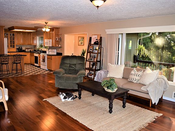 This beautiful 3 bedroom, 2 bath home features an open floor plan and Brazilian Hardwood Floors! Nestled in a quiet neighborhood with a park-like setting, nothing short of serene could describe the experience. Large Kitchen and Living Room connect to a quaint Breakfast Nook which opens to the wrap around Porch! Large Downstairs Bathroom boasts a Walk-In Shower and Soaking Tub. Hot Tub, Attached Shed and detached 3 Car Garage/Shop! Home is currently occupied by quality long term tenants, generating $2000/m net income, investors welcome!