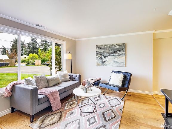 Newly updated rambler 3BR/2ba. Master BR with private full bath! Home is equipped with gas furnace. Refreshed with new flooring, paint and new roof in Dec '17. Located on a quiet dead-end street. Easy commuting access to I5 and HWY99. Few blocks away from stores, restaurants and Park & Ride (Future Lightrail station). Fully fenced backyard with patio off the kitchen to extend outdoor entertainment. Peek-a-boo view of Mt. Rainier from living and bedrooms. Welcome home!