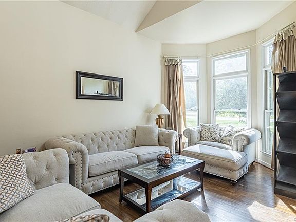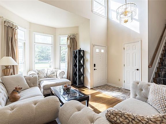 This 4-bedroom, 2.5 bath has its all- It includes a large yard that is over ¾ of an acre, a two-car garage, and a great location. Just walk into it and you see a large living room boasting a 2 story cathedral ceiling. It welcomes you with new hardwood floors throughout the house and stairwell. The home boast granite countertops, a large kitchen that opens to the den, a cute breakfast nook with a view of the backyard, and a new quiet dishwasher has been installed. It even has a large walk-out deck with landscape lighting that overlooks the rear yard. This house is ideal for entertaining. The stairs have a beautiful wool runner on them. The second floor has four bedrooms including the primary bedroom which is light-filled with tall ceilings and two closets. It is complete with a large private bath with a double sink and skylights.