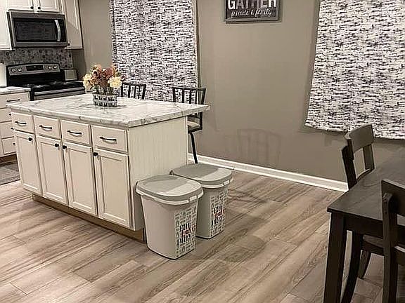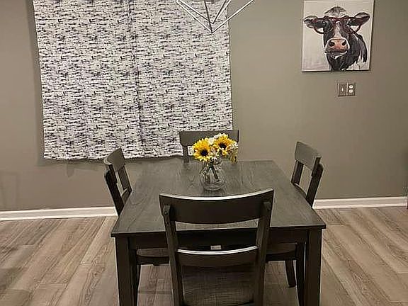 This home is newly renovated, all new flooring, paint, drywall, and lighting. The bathroom was gutted and fully renovated. A wall was torn down between the kitchen and dining room for a updated and open concept.