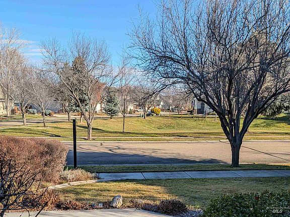 This beautiful single-level home in the Lochsa Falls neighborhood faces a wide open space of lawn and trees. Located near premier schools, shops, banks, Costco, Winco, and Fred Meyer, with easy commute access. Features one drive-thru garage bay of the 3-car garage with auto openers. Custom river rock fireplace, coved family room ceiling, neutral paint, fresh carpets, hardwood floors, ceiling fans. Kitchen features gas range, under cabinet lighting, soft close cabinets and drawers. Kitchen wood floor has been refinished. Whole house recirculation pump for instant hot water. New toilet in the main bathroom. Kitchen refrigerator, washer & electric dryer included. French door leads to the extended covered back patio, and the large backyard, ideal for gardening and relaxing.