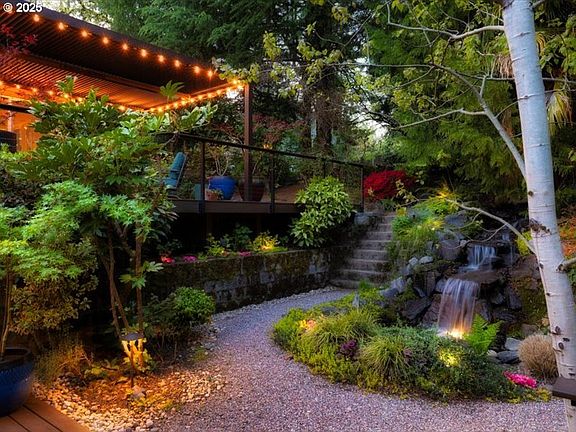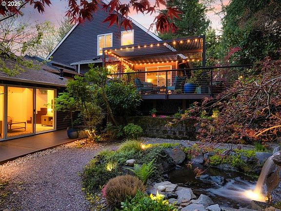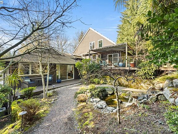 Incredible SW Portland sanctuary surrounded by nature on quiet cul-de-sac. Light filled with floor to ceiling windows and skylights throughout. Luxurious main level primary suite with stunning serene spa like bathroom, dual walk-in closets and slider to private deck. Gourmet kitchen with Pentax quartz, Dacor and Miele appliances and handmade tile backsplash. Second main level bedroom with adjacent full bath and bonus room--perfect for in-laws or nanny. Outside is a private peaceful oasis featuring multi-level Timber Tech deck, soothing water feature, mature landscaping, low maintenance turf yard and meandering slate pathways. NEW Furnace(2025). Close to everything & excellent schools, Bridlemile, West Sylvan & Lincoln. Truly a special home!