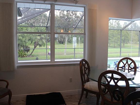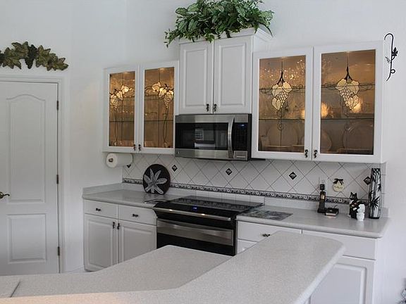 STOP! This home looks as if it has just been built. First it is owned by an artist who has made all the stained glass throughout the home, and if the buyer would like them them will stay. You will notice the front doors, the kitchen cabinets, the parrot in the office, the leaves over the bed to name but a few. The owners had the home built with the open plan so the walls in the kitchen were removed and you have one great room where all can be a part of the action. Look at the kitchen cabinets with the stained glass doors. All the outside doors have been replaced with fiberglass. There is a central vacuum with a kitchen sweep - no more bending. In 2020 all new hurricane proof triple pane windows were installed. A new roof was also added the same year. The pool has the pool cleaners that pop up so no pulling hoses to clean the pool. There is a murphy bed in the 2nd bedroom so you can have an office as well as a guest room. The home has a generator. The blinds in the master bedroom and the living room are Hunter Douglas with the remote that opens and shuts. The two car garage is oversized to 638 sq ft. All the sinks and toilets have been updated in 2017 and the AC's coils have been replaced and the blue light was replaced in 2017. This home has so much to see and feast upon. Wait till you see the pool area overlooking the green space and there is a dog run so your dog doesn't have to wait till you get home. Then along the side of the home is the path which leads to the surprise gate. Be ready to be wowed!