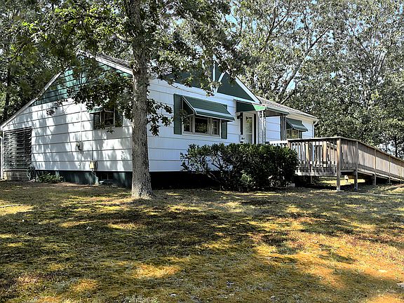 This ranch style home, nestled on a quiet corner, provides easy comfort and peace. Don't be fooled by its compact exterior. The main floor provides a large eat-in kitchen, full bath, two roomy bedrooms and a spacious living room. Then, double your living space with a full, mostly finished, DRY basement. With a second bath, and the fixtures for a second kitchen, the massive, open-concept design accommodates whatever your needs may be - from family entertainment to play dates to a teen lair. Your peaceful comfort continues onto the enclosed back porch with screens and jalousie windows. Continue on a covered, indoor walk into the oversized, two-car garage, which includes an attic for storage, a workbench and a third overhead door for drive-through convenience. The cement driveway doubles as an outside patio for picnics and barbecues or shaded relaxation with a tall glass of iced tea. Finally, your peace and comfort are complemented by the privacy of the nearly one-half acre of land surrounding this home. Solid, well-maintained estate home. Thirty-year dimensional roof installed in 2008. Freshly-painted, cedar shake siding. Move-in ready As Is.