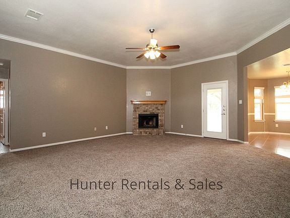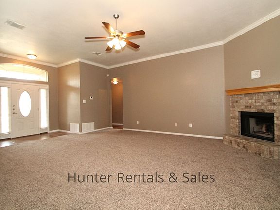 Beautiful Timber Ridge Estates Home. Gorgeous landscaping with Kwik curb lined flower beds, mature oak tree in privacy fenced rear yard, sprinkler system, and covered patio. Two car garage with automatic opener, security system, maintenance free water purification system, and air purification HVAC system. Spacious living room with fireplace, large laundry room with washer and dryer included "as is". Master bedroom with raised ceiling, master bathroom with double vanity, separate shower, garden tub, and huge walk-in closet. Kitchen with granite counter tops, oak cabinets, glass top stove, side-by-side refrigerator, and pantry. Additional amenities include raised panel doors, faux wood blinds on all windows, and attractive ceramic tiles in all wet areas