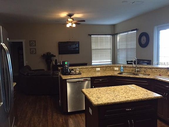 This home is a must see and move in ready!! This home boasts a new kitchen with granite, updated cabinets, stainless appliances including dishwasher and double oven professional series range. Updated/new cabinets in all bathrooms as well. New hand scraped laminate wood flooring in main living area. Master bath has shower, double sinks and jacuzzi tub. Large walk-in closet. Fully fenced PVC vinyl fence with a double gate. 8' high on south side of property since neighbors house sits up higher. All new 5 1/4 custom baseboards and Custom trim work on windows, walk-through a and column. Walk-in pantry in kitchen with grand new lighting and above-cabinet lighting New custom size French doors in the living room to the lanai Pool resurfaced 1 year ago with sand color pebbletec Whole home audio system that just requires a head unit and you can play music via wifi in almost every room inside of house and the lanai and chose the rooms to play