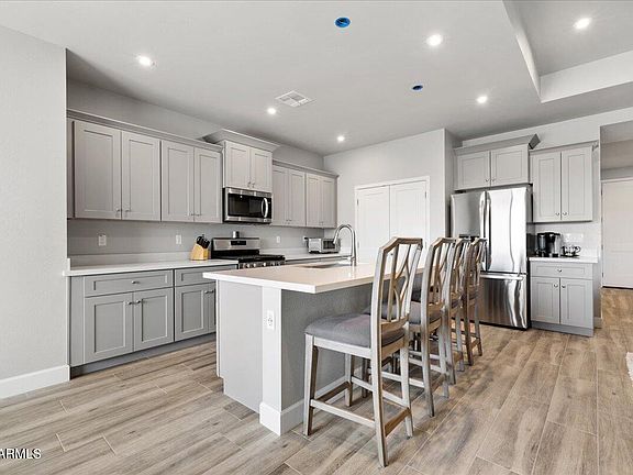 This home is like new and features 2 bedrooms PLUS den/office, modern kitchen with quartz countertops, tile flooring, stainless steel appliances and a spacious kitchen island. The home offers stunning, unobstructed views with no neighbors behind and complete backyard landscaping perfect for entertaining. Energy-efficient with owned solar panels, smart home technology, 2.5 car garage and an extended driveway, this property offers all the space you need along with comfort and savings. This home was recently inspected at its 1 year anniversary and is in pristine condition. Nestled in a lifestyle-oriented neighborhood packed with amenities, including multiple pools, racket courts, workout facility, clubhouse, and a restaurant. Inside, neutral tones flow seamlessly throughout, complemented by thoughtful upgrades and abundant potential for personalization.