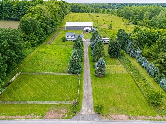Bring your horses home to this gorgeous farmette! This beautiful home has been completely updated from top to bottom featuring 3 levels plus a basement that is great for storage! The spacious eat-in kitchen shines with granite countertops, fresh paint throughout the whole house, new flooring, and updated bathrooms! This property has almost 7 acres with about 5 acres that are fenced. Watch your horses & farm animals from your brand new trex deck! Newly resided and roofed 30X40 barn with three newly built stalls and a feed/tack room area. Ride all year round with your beautiful newly built 120x60 indoor arena (built in 2020)! Additionally, there are three 10X10 sheds w/ new metal roofs, perfect for chicken coops or small animals that are conveniently fenced in. A 12X36 shed offers ample storage space for hay or other needs & there is also a garden shed. Two of the sheds have electric! This property truly has everything you need for a life of homesteading and comfort! New metal roof ('19) & hot water heater ('22)! Public water available at the road. Delayed Showings start on Friday (6/14) at 4PM, and delayed negotiations are due on Wednesday (6/19) at 11AM.