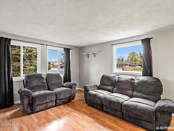 Beautifully maintained, cozy 3 bed, 1 bath, big living 864 SqF starter home on a large quiet corner lot in Nunaka Valley! Features open concept living, Remodeled in 2019 with New vinyl windows, kitchen cabinets, SS appliances, laminate flooring and paint. Metal roof is 10 years old. Close to JBER and downtown, large storage shed included. Schedule your appointment today!