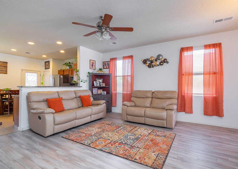 The beauty of the mature trees and landscaping highlight the curb appeal of this well designed home. A first impression upon entering may be youâre in the builderâs model home but this is a residence that has been lovingly cared for and appreciated by the original owner. The open floor plan enjoys abundant natural light and provides great connectivity between living, dining and kitchen spaces. The country-style kitchen features rich granite countertops, a spacious pantry, stainless steel appliances and beautiful cabinetry. The smart design provides separation between the bedrooms ensuring privacy for all. A master en-suite enjoys an oversized walk-in closet and spacious bath with soaking tub. The large laundry/mud room is en-route from the garage. A spacious and fenced backyard with mature trees is conveniently accessed via patio door in the kitchen. Attractive environment and energy savings features of the home include construction to Build Green New Mexico Silver Standards, Energy Star Low-E insulated windows, a Lennox 93% efficient furnace, a 14 SEER Lennox air conditioner, a Rannai Tankless gas water heater and solar readiness.