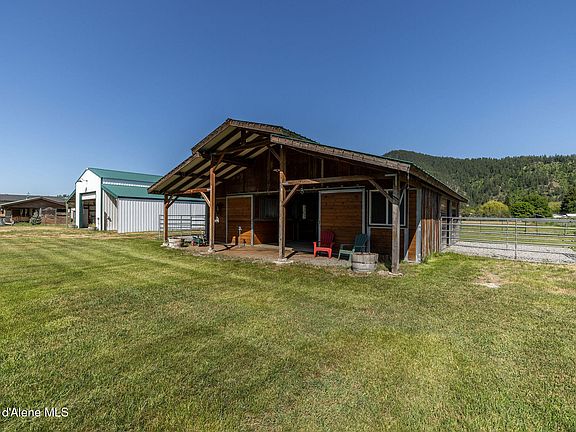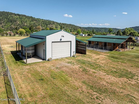 Incredible Dalton Gardens Horse Property on 2.47 Acres Backing to Canfield Mountain! Meticulously maintained property includes 4 bedrooms, 3 bathrooms, 2,076sqft, 24'x36' shop with two 12'x36' lean-to's & two 30-amp RV hookups, gorgeous 34'x36' horse barn with 5 stalls, cedar-lined tack room, 10' center aisle, potable water & multiple paddocks, newer Lennox furnace & A/C, professionally painted in 2024, kitchen with leathered granite, large island, BBAR seating & vaulted ceilings, spacious master w/walk-in closet & en-suite bath, two living rooms, dedicated laundry + mud room & charming wrap-around front porch. Enjoy breathtaking & unobstructed views of Canfield Mountain, fully fenced pasture, Dalton Irrigation, mature trees and landscaping, nearby Dalton Riding Arena! Rare large acre parcel available with Dalton Gardens amenities and Pride of Ownership Throughout!