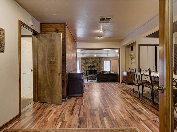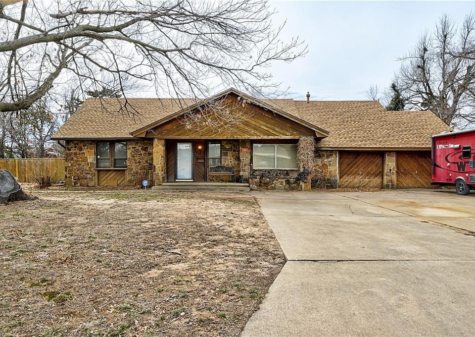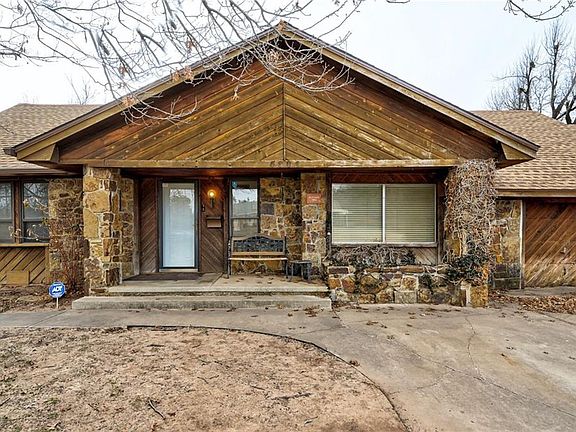 ALMOST 1 FULL ACRE IN THE HEART OF THE CITY!! 4 bedroom/2.5 bath home with large back yard, with 1 bedroom studio home in back yard, with plenty of room for all your other activities. Home was originally built back in 1938, but was taken down to the studs and remodeled in 1980 to become the existing home you see today. Lots of custom wood and stone gives it a very lodge type vibe. Concrete floors in living area with huge stone, wood-burning FP. Long galley style kitchen with tile, and carpet in bedrooms. Large primary bedroom with large en-suite bathroom that includes a sauna. Newer plumbing, and new roof in 2020. Studio home is 5 years old, with full kitchen, private bedroom and 3 piece bath. Close to shopping, easy access to I-44 and NW Expwy. Stop by and check this cutie out today.
