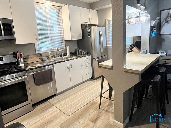 Welcome home to this beautiful, updated, like new home close to Maumee Bay state Park! The kitchen with soft-close drawers opens to the living room, has stainless steel appliances, & a bar that comfortably seats 4. The utility room located between the bedrooms makes laundry a breeze. Relax on the concrete back patio or enjoy playing fetch with your best friend in the fenced area of the large yard. Storage space is not an issue with the pull-down stairway into the full stand up attic. All appliances, window treatments, and patio set of table and chairs stays. Make this house your home.