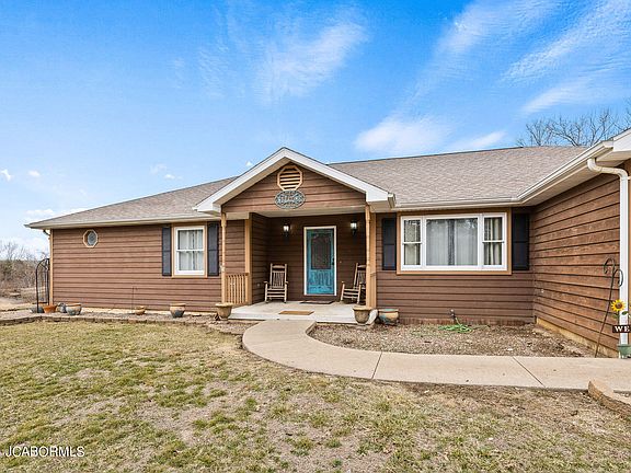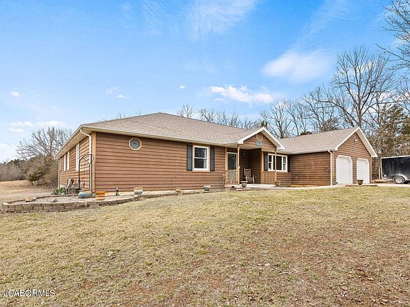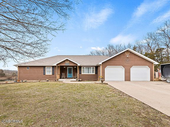 Discover your slice of paradise at 5904 Route AA in Russelville, MO! Embrace serene country living on 4.8 acres featuring a fully stocked pond teeming with Hybrid, Blue Gill, and Perch. Stay secure with a concrete safe room in the basement. Indulge in comfort with a warm primary bathroom boasting a heat fan. Enjoy versatile living with 4 conforming bedrooms plus a bonus 5th room. Convenience meets functionality with main-level garages and laundry. Bonus: a massive third garage in the basement and a second kitchen for added flexibility. Your dream home awaits!