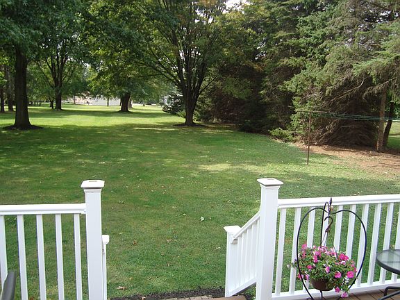 Meticulously maintained brick front, vinyl siding, 2 1/2 car finished garage, new maintenance free windows, hot water heat with central air, one acre lot . Rec room in the basement . very private community,